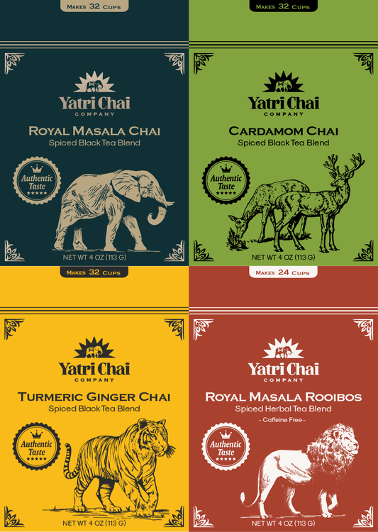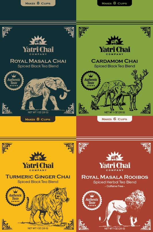 Yatri Chai's fragrant chai blends combine robust black tea with a symphony of aromatic spices—think cardamom, cinnamon, ginger, cloves, and more—creating a warm, invigorating experience. Our masala chai is ideal for morning rituals, cozy afternoons, or grab a Rooibos blend for a caffeine-free, evening treat.